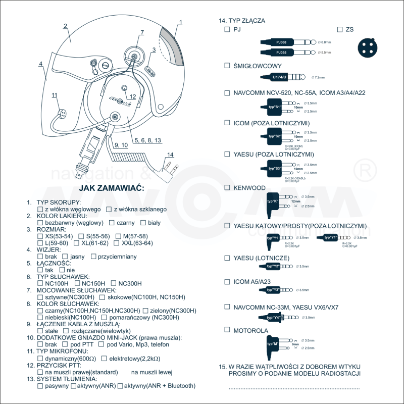 Bazę zestawu NGC-2500W-C stanowi certyfikowany (EN 966:2000) kask do sportów powietrznych serii NG, którego ocenę zgodności wykonała polska jednostka notyfikowana (ITS Warszawa). Kask wykonany jest z włókna węglowego i oferowany w jednym z sześciu rozmiarów. Do kasku opcjonalnie dołączany jest przeźroczysty bądź przyciemniany wizjer.